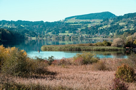 Wer mit flottem Schritt eine schöne Wanderung entlang des Niedersonthofener Sees machen möchte, kann mit festem Schuhwerk, witterungsabhängiger Kleidung und Nordic-Walkingstöcken seinen Herzrhythmus und seinen Kreislauf in Schwung bringen.
